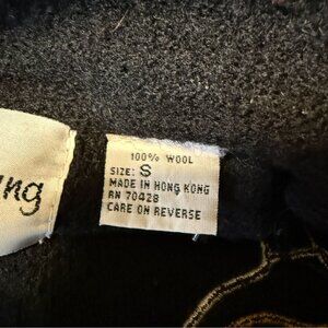Vtg Sharon Young Black Wool Christmas Cardigan Santa Bear Button Down Hong Kong