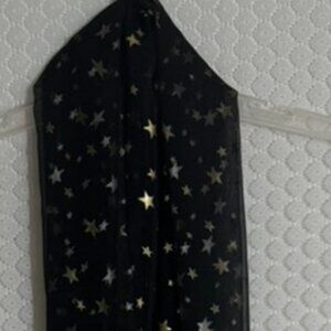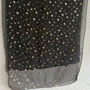 Vtg Sheer Black with Gold Stars Oblong Scarf -20" x 68"