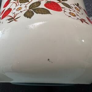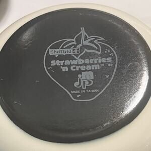 Vintage Sheffield Strawberries & Cream Enamel Sauce Pan 5in Diameter with Pour Spout. One small blemish near bottom as photographed.