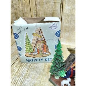 Vtg Shiney Brite Nativity Small Plastic Set Mary Joseph Baby Jesus Lambs No 9403