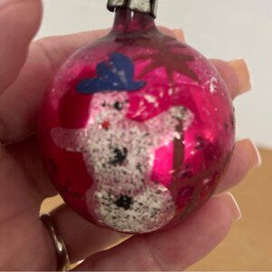 Vtg Shiny Brite Glass Christmas Ornaments Set Of 2 w Snowman And Striped Designs