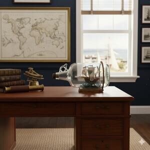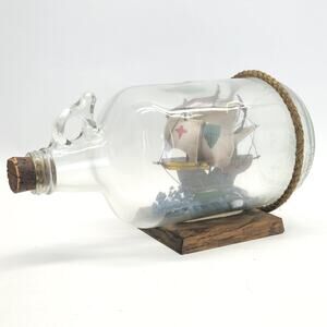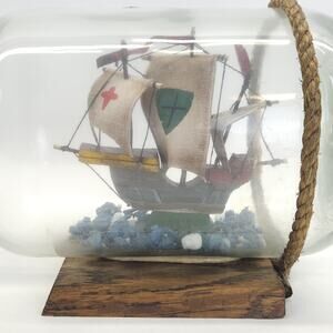 Vtg Ship in a Bottle Nautical Sail Model Miniature Art Nautical 10.5"W MCM