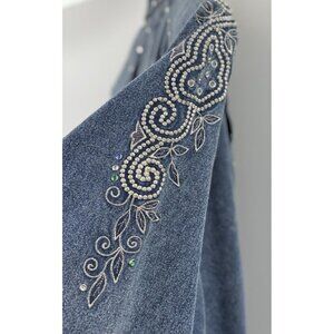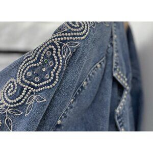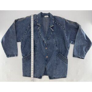 Vtg Side Roll Studded Embroidered Jacket Denim Studded Pocket Button One Sz Flaw