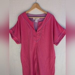 Vtg Signature II Stan Herman Pink Zip Short Sleeve Robe Pajamas Mummu Pockets