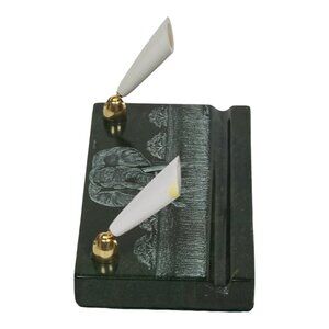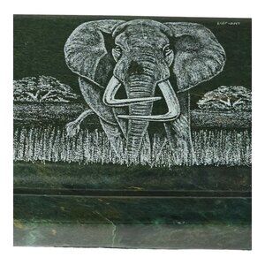 This Unbranded vintage elephant pen holder exudes a unique charm. It’s handcrafted from verdite stone with beautiful etchings, signed by its African artist.