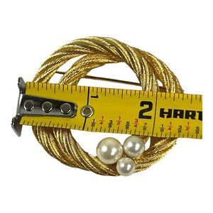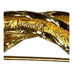 Vtg Signed CHRISTIAN DIOR Woven Rope Gold Tone Faux Pearl Brooch 2.25” Classic