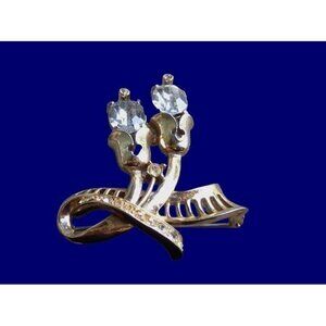 Vtg Signed Coro Gold Tone Metal Tulip Flower Floral Brooch Clear Stones Costume