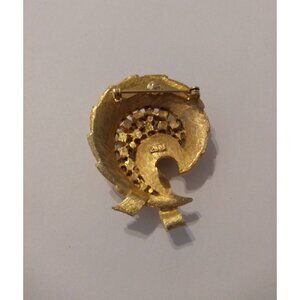 Vtg Signed JJ Brooch Brushed gold tone faux pearl Jonnette Art Neuveau Swirl 2"