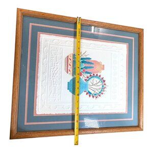 Vtg Signed Jane Billman Southwestern Pottery Cactus Embossed Art Print Oak Frame