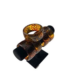 Vtg Signed Joan Rivers Faux Tortoise Leopard Cheetah Print Lucite Chunky Bangle