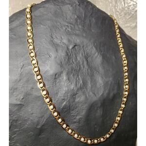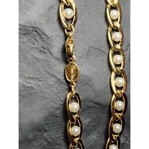 Vtg Signed Napier Caged Faux Pearl and Gold Tone Link Chain Classy Necklace