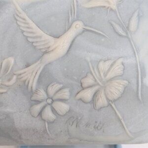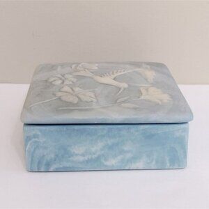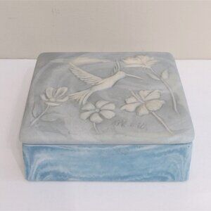 Vtg Signed Robert Nemith Hummingbird & Floral Inlay Blue Soapstone Trinket Box