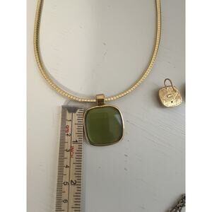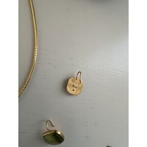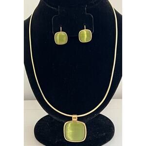 Vtg Signed Roman Green Pendant & Earrings & Gold Tone Necklace Cat’s Eye