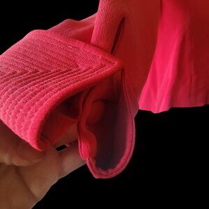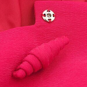 This vintsge silk tailored blazer features unique knot-style button closures, a structured wide collar, and vibrant red fabric. Ideal for professional or formal settings.