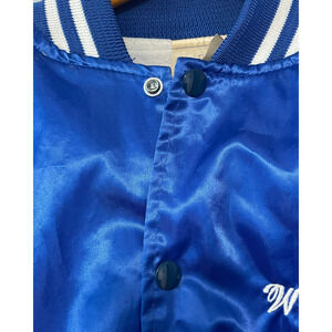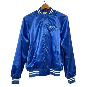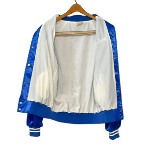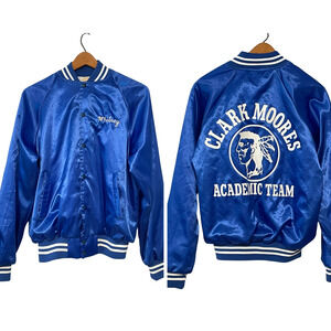 Vtg Silky Varsity Bomber Jacket Sz M Academic Team CM Indian Mascot Blue & White