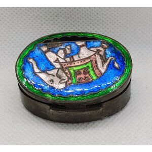 Vtg Silver Cloisonne Enamel Indian Elephant Hinged Pill Snuff Trinket Box