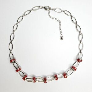 Vtg Silvertone Red Link Necklace Oval Link w/ Double Circle Floating Hoops