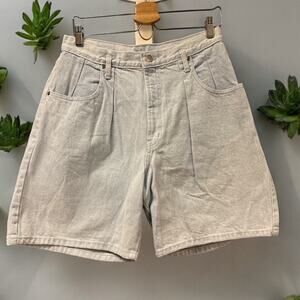 Vtg Size 13/14 90s High Waist Pleated Mom Shorts Denim Bermuda High Rise Pockets