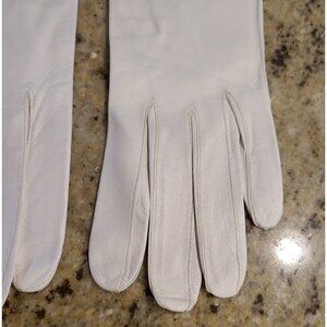 Vtg Size XS-S 6 Cream Soft Kid Leather Formal 10.5" Long Gloves Embroidered