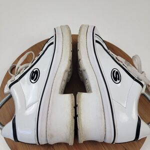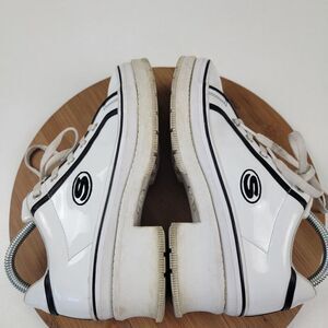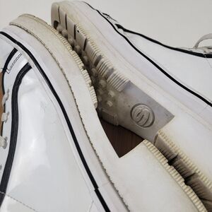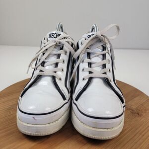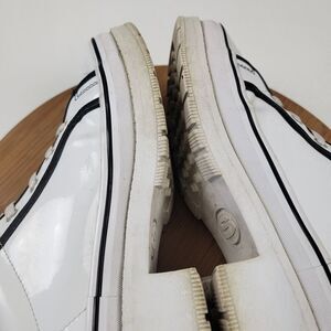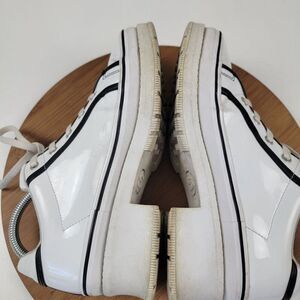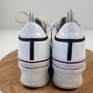 Preloved block heel patent leather sneakers in fair to good condition with signs of wear and discoloration shown. See pictures for more details and measurements. Feel free to ask any questions.