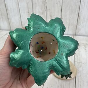 Vtg Small 6.5” Ceramic Christmas With Stand Hand Painted