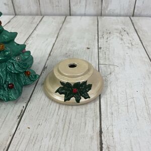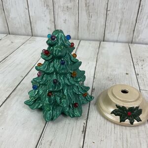 Super cute vintage small measuring about 6 1/2 inches ceramic Christmas tree. It is missing some pegs and the star on the top.