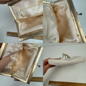 Vtg Small Beaded Purse Handbag Small Ivory Cream Gold Chain Hexagon Pattern READ