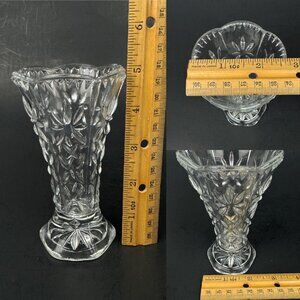 Vtg Small Clear Glass Crystal Pressed Bud Vase Germany Texture Tabletop 5 inches