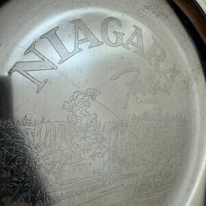 Vtg Small Round Silver Metal Niagara Falls Canada Souvenir Etched Dish Scalloped