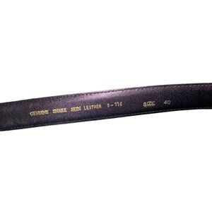 This vintage snakeskin women's belt in size XL 40 features a burgundy color with a gold buckle, embodying a retro 80s and 90s style. The fashion belt is designed with a normal width and is adjustable for a comfortable fit. The bold animal print pattern and buckled accent make it a statement accessory for any outfit, perfect for those looking to add a touch of unique flair to their wardrobe.