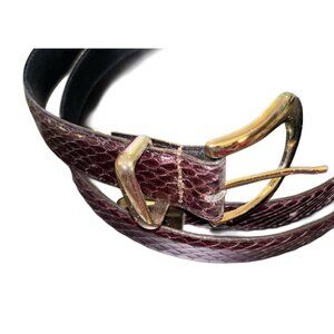 Vtg Snakeskin Women’s Belt, Size XL 40, Burgundy w Gold Buckle, Retro 80s 90s