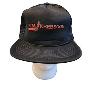 Vtg Snapback Trucker Hat With Mesh Back ICM Krebsoge Black Hat Speedway Cap OSFA