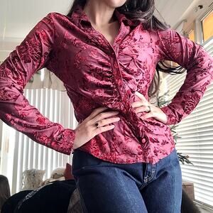 Vtg Sno Skins Velvet Burnout Burgundy Top Sz L