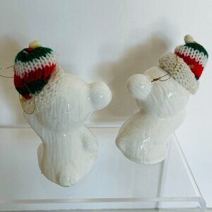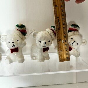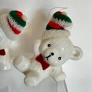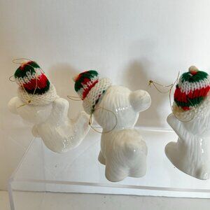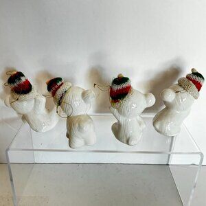Vtg Snow Bear Ornaments 4 Porcelain Bears Knit Hats Bows Christmas Around the
