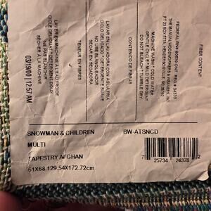 Vtg Snow Scene Tapestry Throw Blanket Snowman Children Dog USA 61x68 Winter