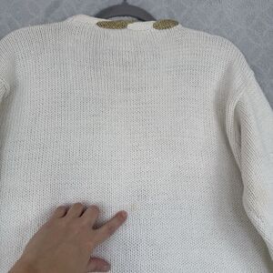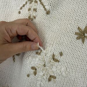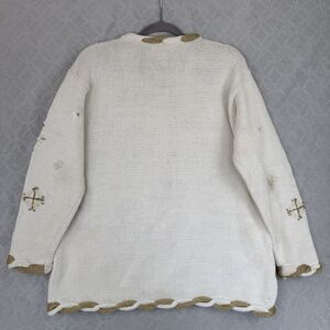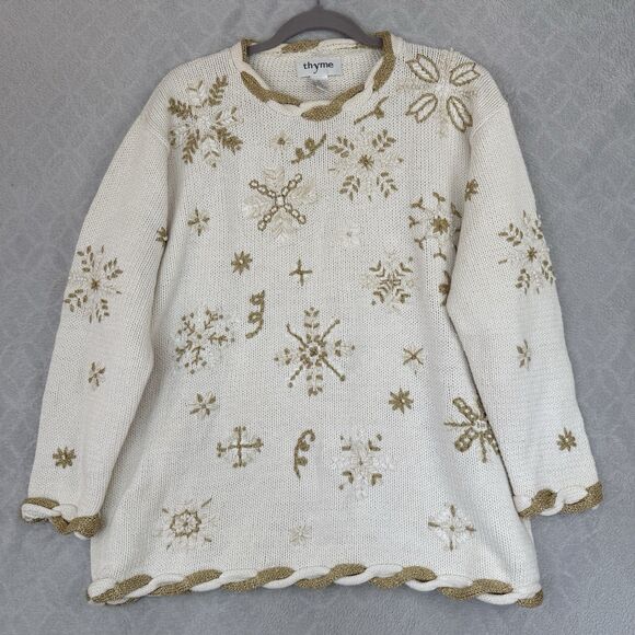 Vtg Snowflake Sweater XL Cream Gold Metallic Woven Knit Holiday Winter Grandma