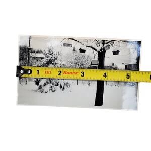 Vintage Snowy Day Bird Houses Covered in Snow Original Monochrome Photo Black and White Found Snapshot 3.25 x 5.5 in Landscape 1960.