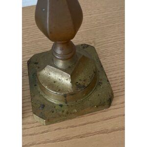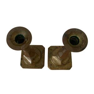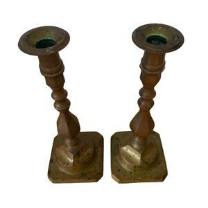 Add a touch of elegance to any room with this set of two vintage brass candle holders. Each holder stands tall and features a classic design.