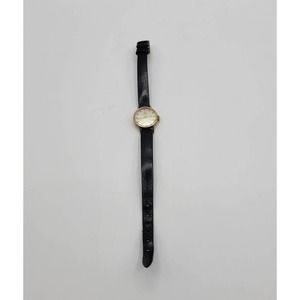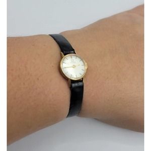 Vtg Solvil Et Titus Ladies Round Face Manual Wind Up Black Leather Band Watch