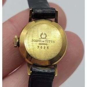 Vtg Solvil Et Titus Ladies Round Face Manual Wind Up Black Leather Band Watch. Excellent Pre-owned condition with minor signs of wear