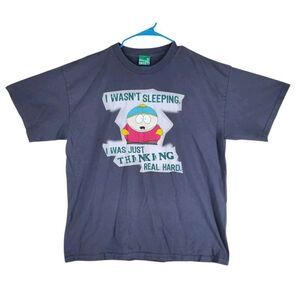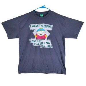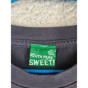 This vintage South Park t-shirt features Cartman in a hilarious sweet tooth pose, with a distressed and boxy gray color scheme. Made from high-quality materials, this shirt is perfect for any fan of the iconic series. The shirt is available in men's size XL and is ideal for casual wear or as part of a cosplay outfit. The brand is PARK and the shirt falls under the clothing, shoes, and accessories category, specifically in the men's clothing and shirts subcategories. Get your hands on this unique piece of South Park memorabilia today!
