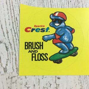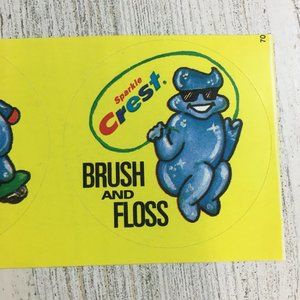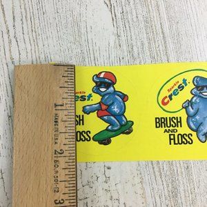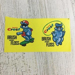 Vtg Sparkle Crest Toothpaste 2 Stickers Brush and Floss Yellow