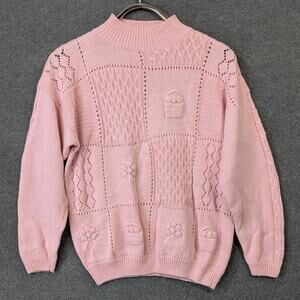Vtg Spice Of Life Sweater Women Medium Easter Basket Flowers Square Patterns