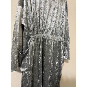 Vintage Beautiful Spoon Brand Open Front Waterfall Cardigan in a Silver Metallic Velvet with a Drop Shoulder and Oversized Pockets in Womens Size Medium
