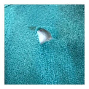 Small hole in center of fabric, approximately 1/2 inch diameter.
