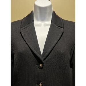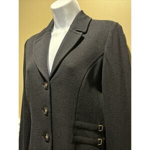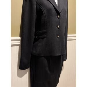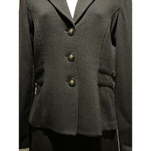 Vtg St John 2pc Skirt Suit Black Santana Knit Button Front Jacket Size 2 Buckles