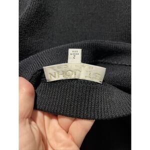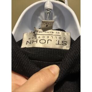 Elevate your wardrobe with the timeless elegance of the St. John Collection. This vintage two-piece skirt suit in classic black is a testament to sophisticated design and craftsmanship. The skirt and jacket are both crafted from a luxurious knit fabric, offering both comfort and durability. With a regular fit and size, this ensemble is ideal for a range of occasions, from business meetings to formal events, or when you wish to make a statement at a cocktail party or wedding.
