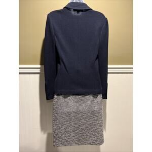 Vtg St John 2pc Skirt Suit Navy Blue Santana Knit Gold Tone Button Jacket Sz 2