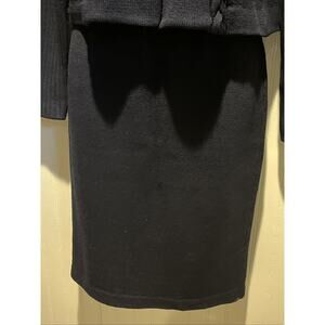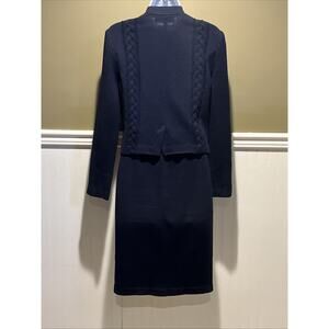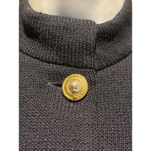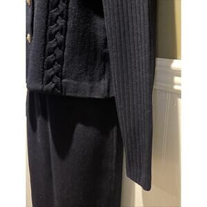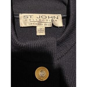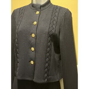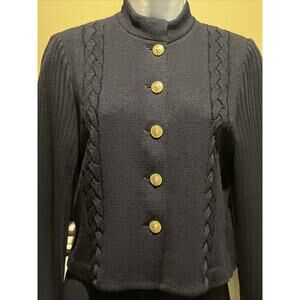 Vtg St John 2pc Skirt Suit Navy Braided Knit, Gold Button Front Jacket Size 0/2