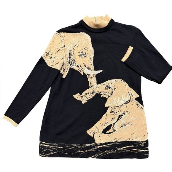 Vtg St. John Knit Elephant Sweater Womens S Marie Gray Santana Knit Intarsia